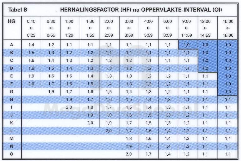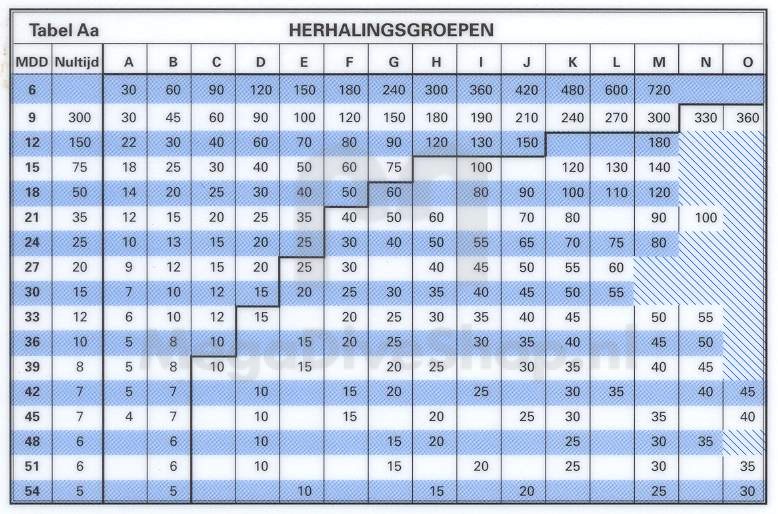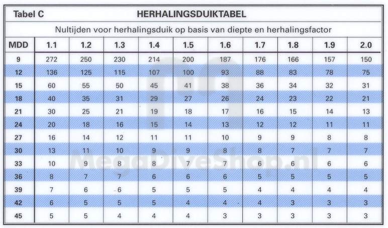 Nultijden, herhalingsduiktabel.