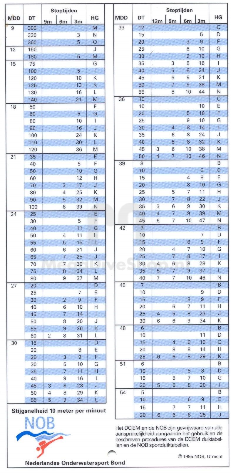 NOB duiktabel
