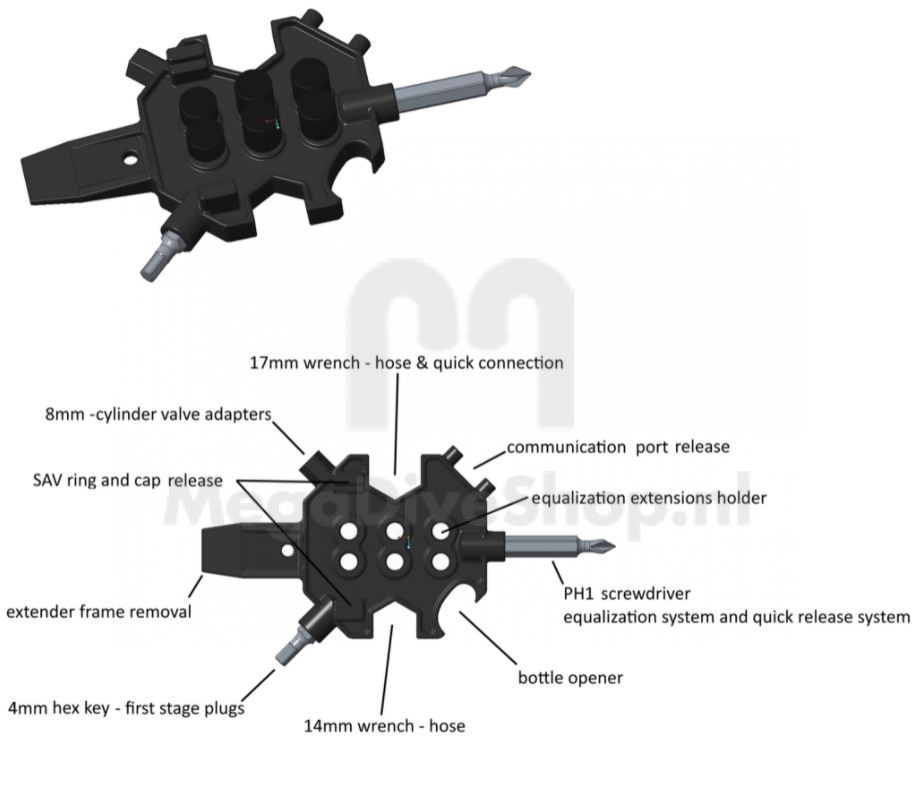 De OceanReef Multitool is de perfecte houder voor de equalizer extensions.